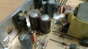 There are some ordinary problems that occur for just about any home-electronic device in due time. It's a case of the Bad Capacitor. The capacitor is an electronic component which temporarily stores an electrical current - kind of like a battery but it can discharge much, much faster. The capacitor is a standard component, and it's usually the larger "electrolytic" capacitors which are troublesome. Fortunately, they're very cheap and easy to replace!